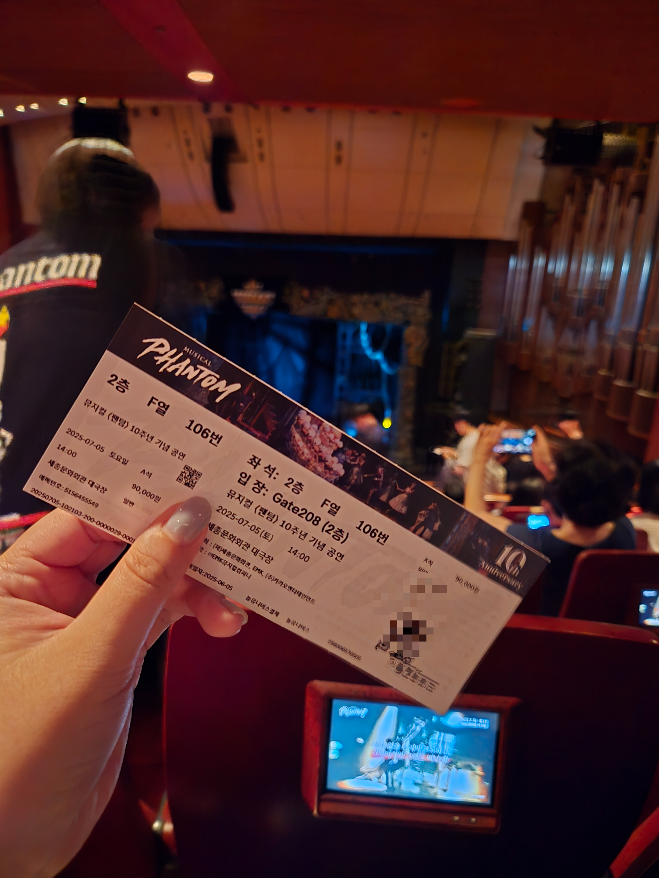 저는 세종문화회관 2층 F열 106번이었구요